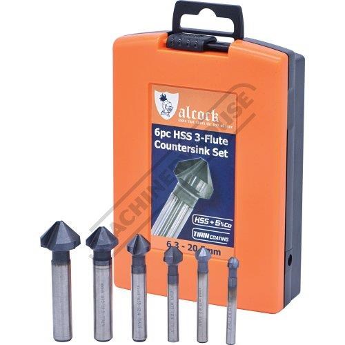 ALCOCK HSS Countersink Set (90° 3 Flute Type) - 6 Piece Ø1.5 - Ø20.5mm