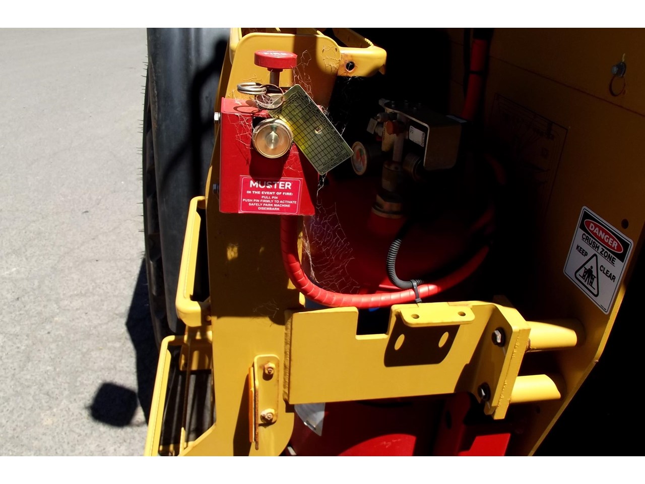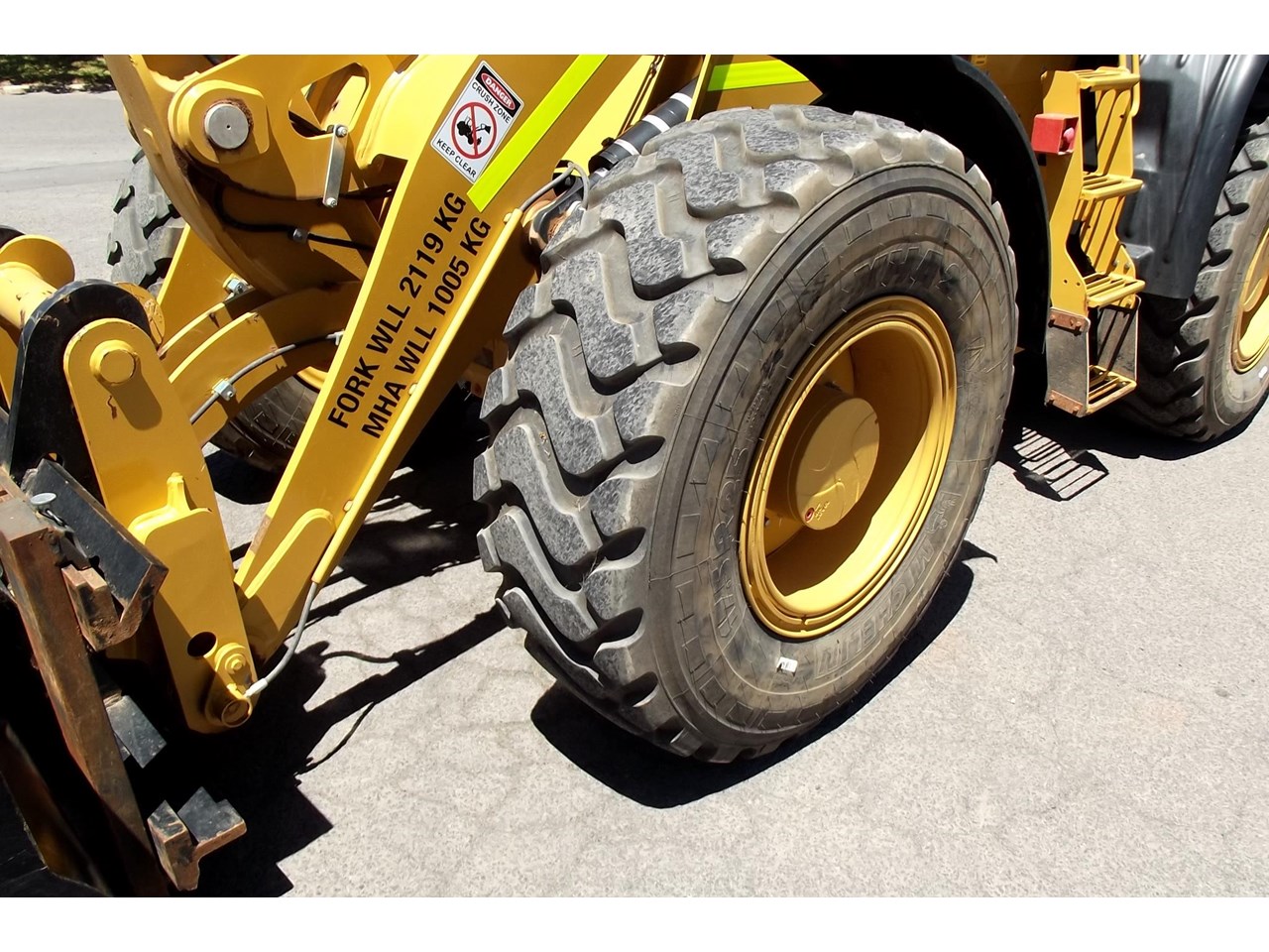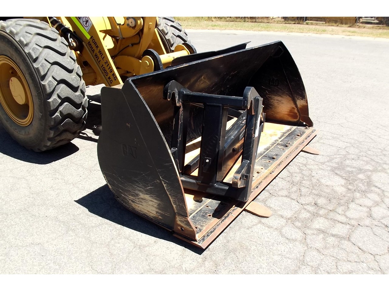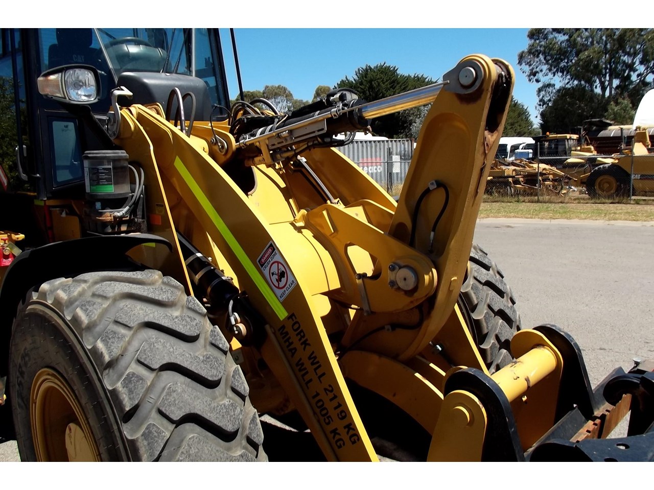 CATERPILLAR 914K TOOL CARRIER, 2022 model with only 660 hours, powered by Cat C4.4,4 Cyl intercooled turbo @ 102HP, hydrostatic transmission with creeper control, enclosed R.O.P.S/F.O.P.S cabin, heater and air conditioning, tinted windows, reverse camera, reverse distance sensing system, radio, uhf, ride control, air suspension seat, orange seat belt, as new 17.5x25 Michelin radial tires, machine equipped with fire suppression system, in cab and external fire extinguishers, led beacon, battery and starter isolators, E stops, Groeneveld auto grease, crane check valves, 3rd hydraulic function, hydraulic quick coupler, Cat 1.6m3 GP bucket with BOE, Cat Crane jib and Cat HD Forks, this Australian delivered machine has the works $170,000 + GST Earthworks Equipment Woodend Vic