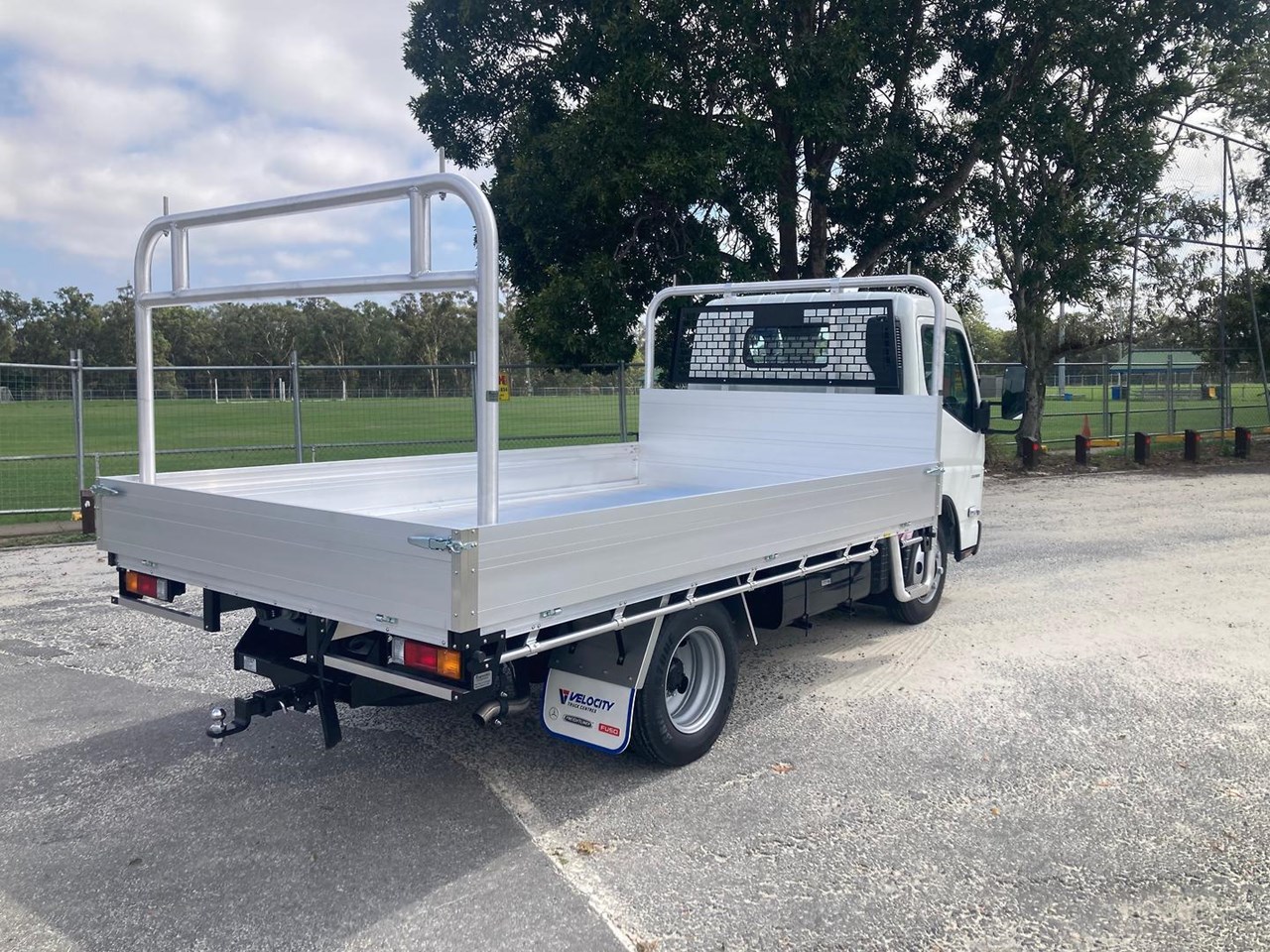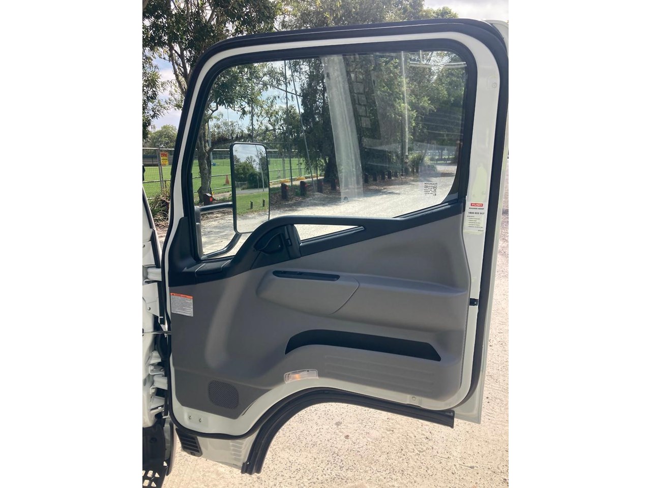 2024 CANTER 515 CITY CAB 4X2 SWB 6SP. DUONIC TRANSMISSION FITTED WITH 3600mm X 2100mm X 300mm (H) DROPSIDES, REAR REMOVABLE LADDER RACKS AND 3.5T RATED TOWBAR WITH 50mm BALL, CANVAS SEAT COVERS, RUBBER FLOOR MATS.