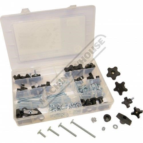 A complete assortment of the most popular Zinc Plated Steel T-Bolts and Plastic Knobs used for building or repairing custom jigs!
