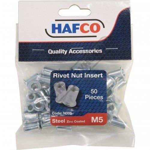 HAFCO Rivet Nut Inserts - M5 x 0.8mm Steel - Zinc Plated Qty 50 In Pack
