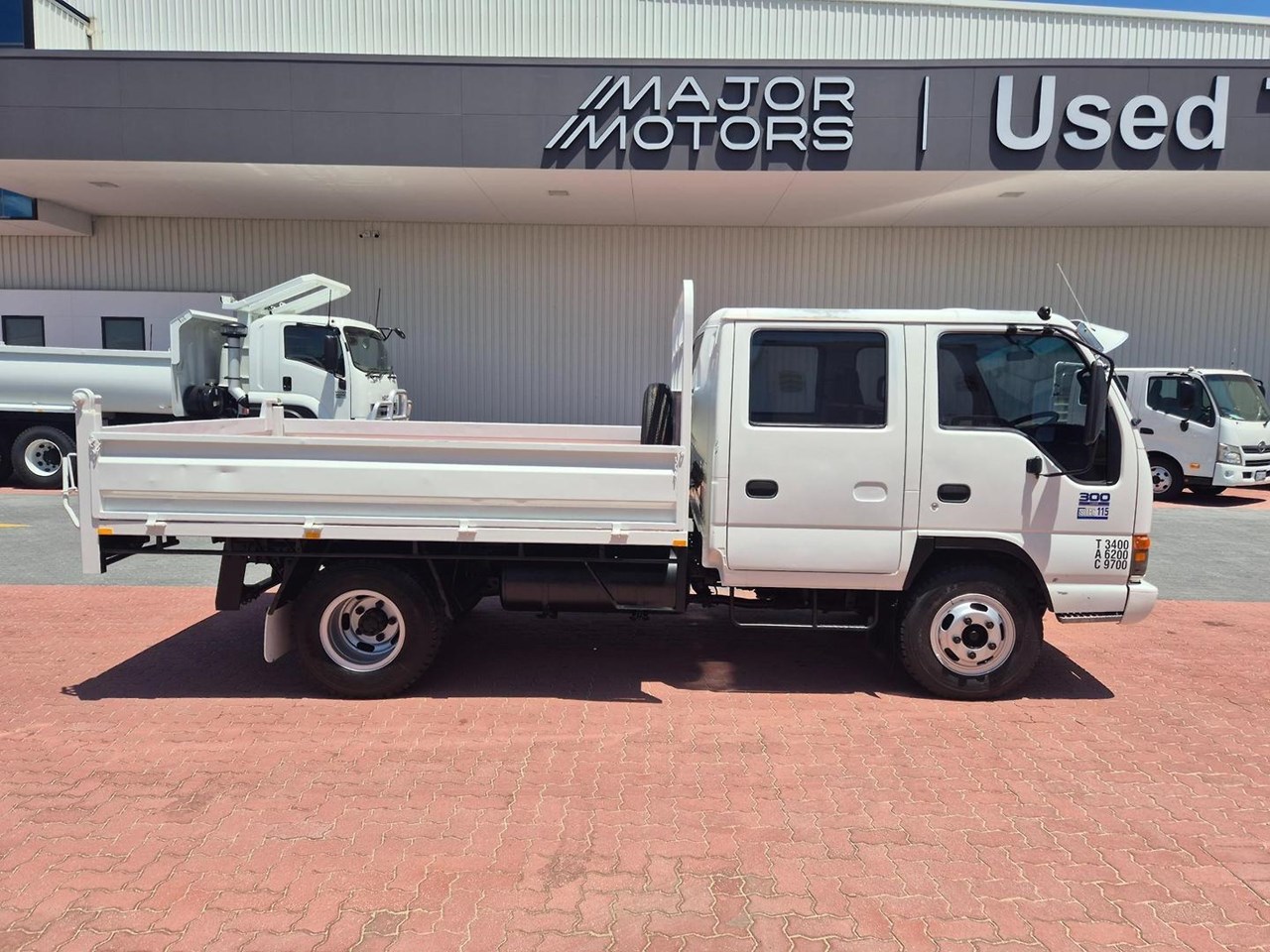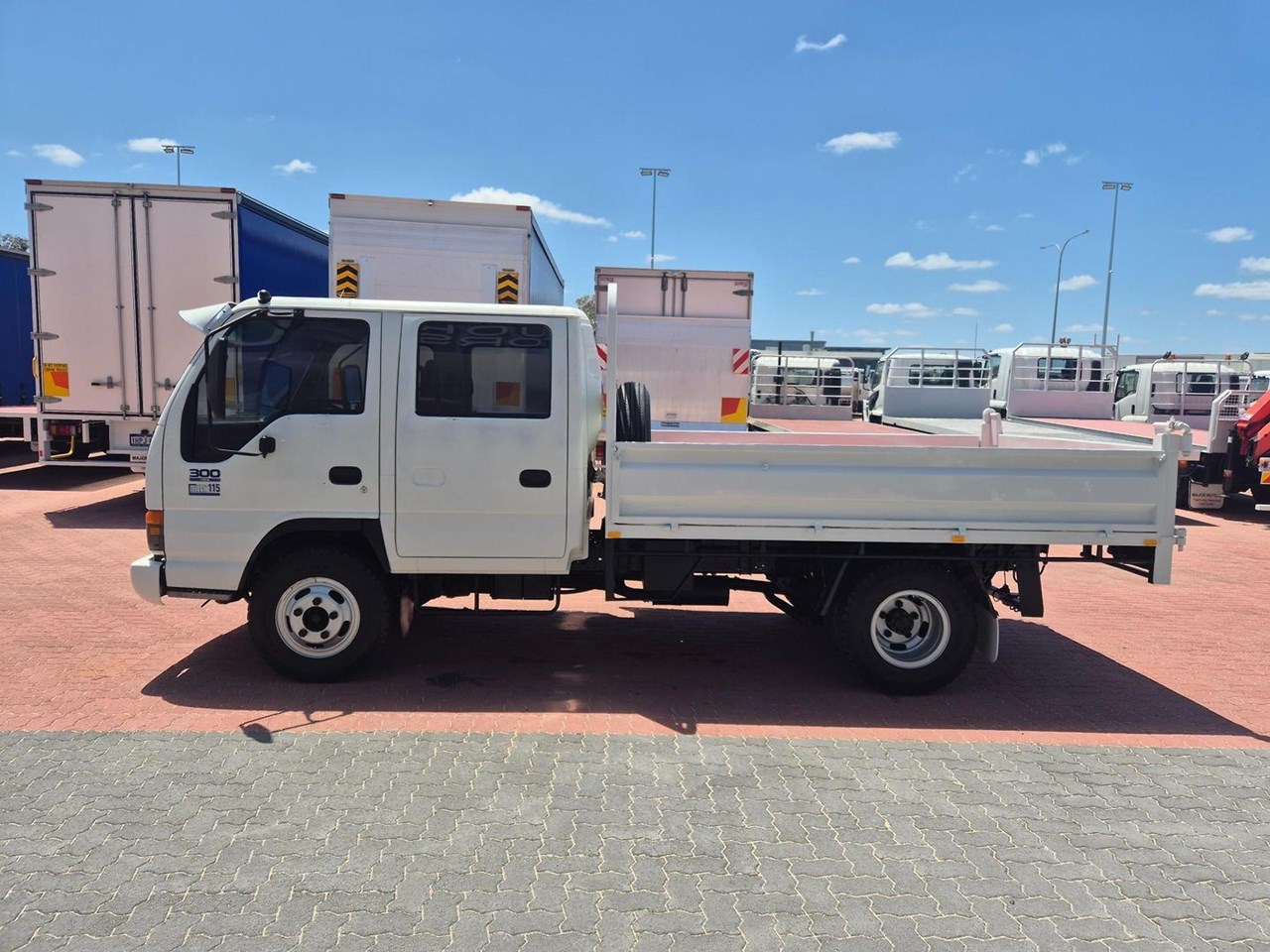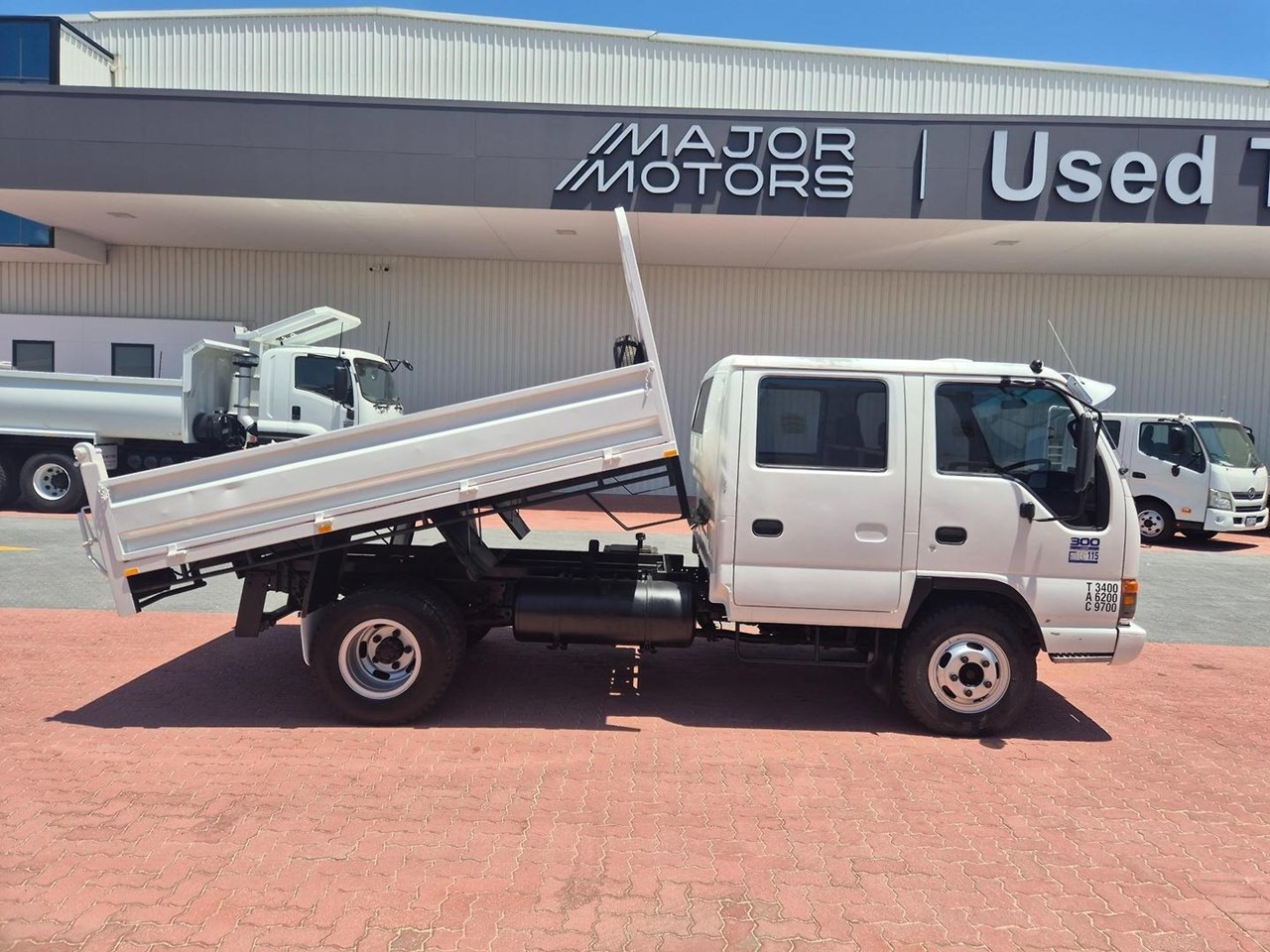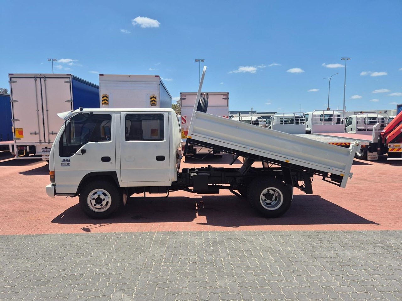 One of our Famous "Oldschool" Isuzu NPR300 Crew Cabs fitted with a 3.2m Tipper and Towbar.