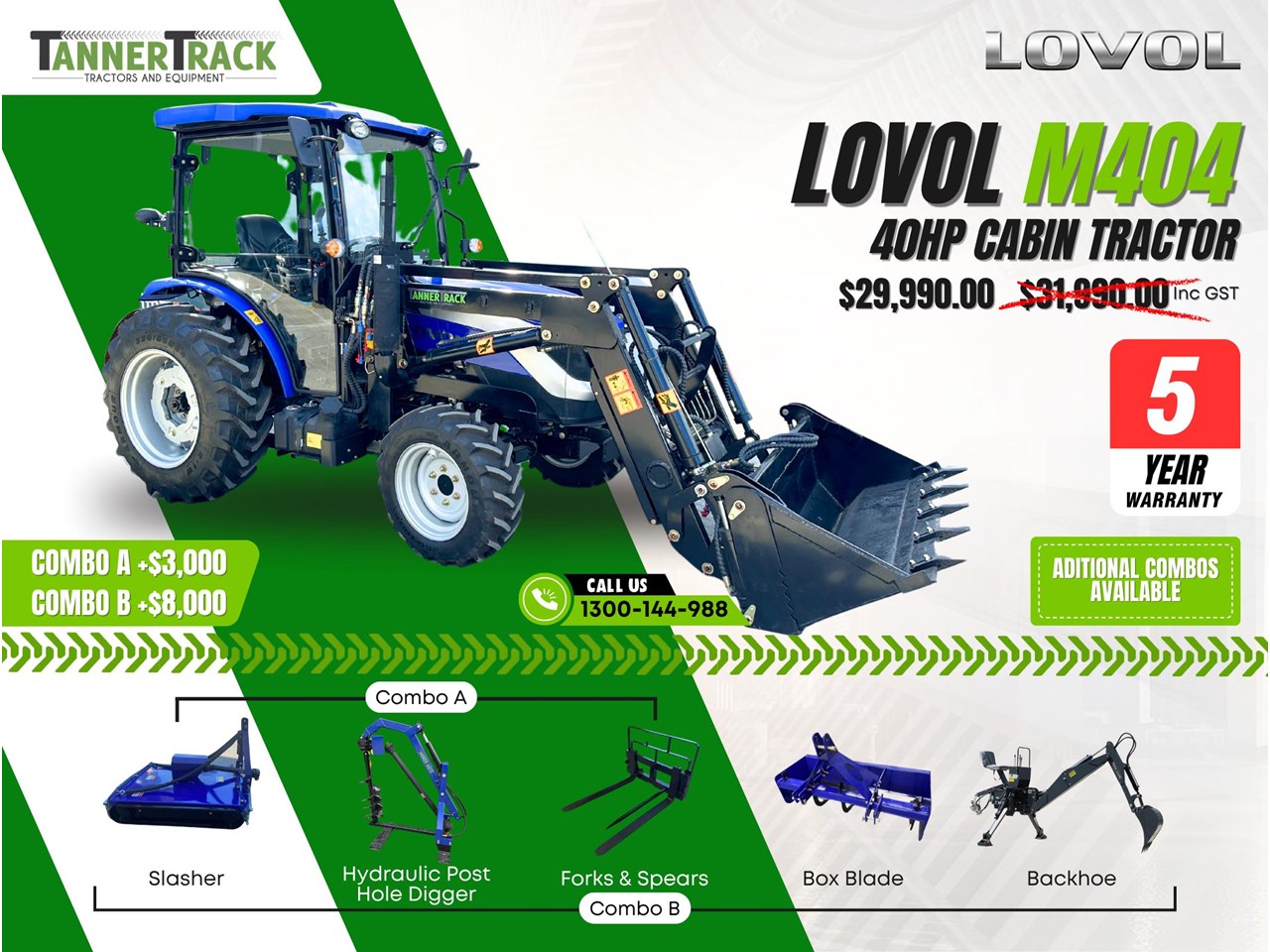 | Title | TANNERTRACK - LOVOL 40HP Cabin, Synchromesh Shuttle Shift, 4WD Tractor with 4in1 Loader |