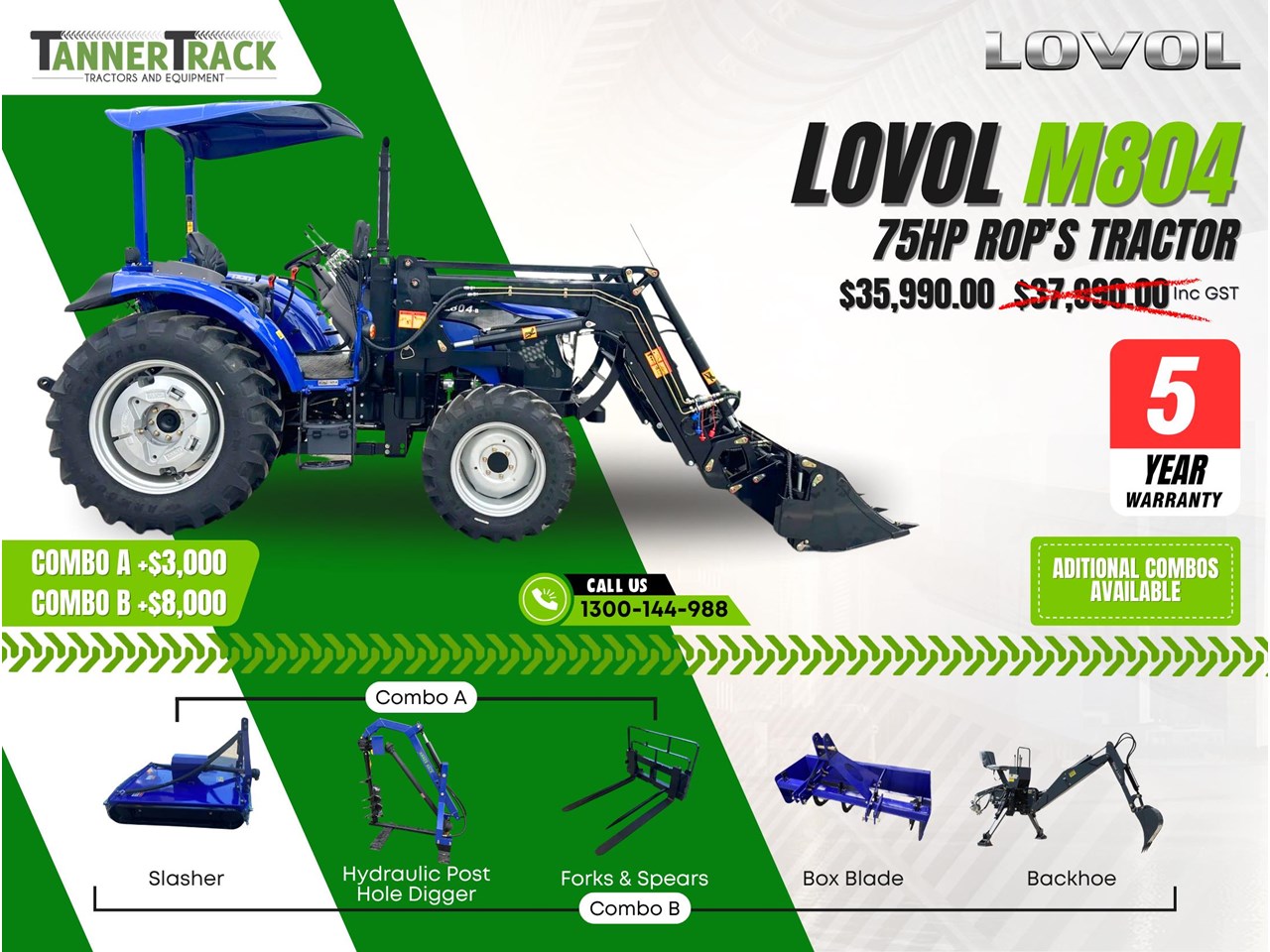 | Title | TANNERTRACK - LOVOL TB-3 75HP Rop's, Synchromesh Gearbox 4WD Tractor with 4in1 Loader |