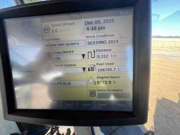 Features: 520/85R46 Triples, 8 Remotes, Mega Flow Hydraulic pump, Front and rear weights, Wheel weights, Pro 700 display, PTO, Isobus compatible, Engine Serial - 000006803