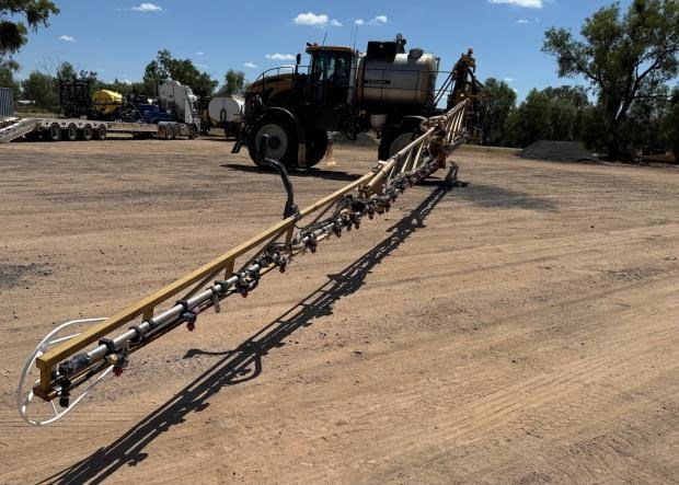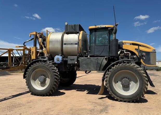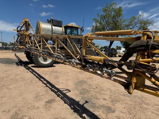 RoGator RG1300B Sprayer, self propelled, 36 metre boom, 6200 litre tank, 5127 hours, 480/80R42 tyres, auto levelling, engine rebuild (1500hrs ago), Trimble 2 cm guidance, 3-4 metre hyd adjust wheel centres, 5 way nozzles, 400 litre wash down tank, auto lube, work light package, good condition, near Goondiwindi Qld, includes GST