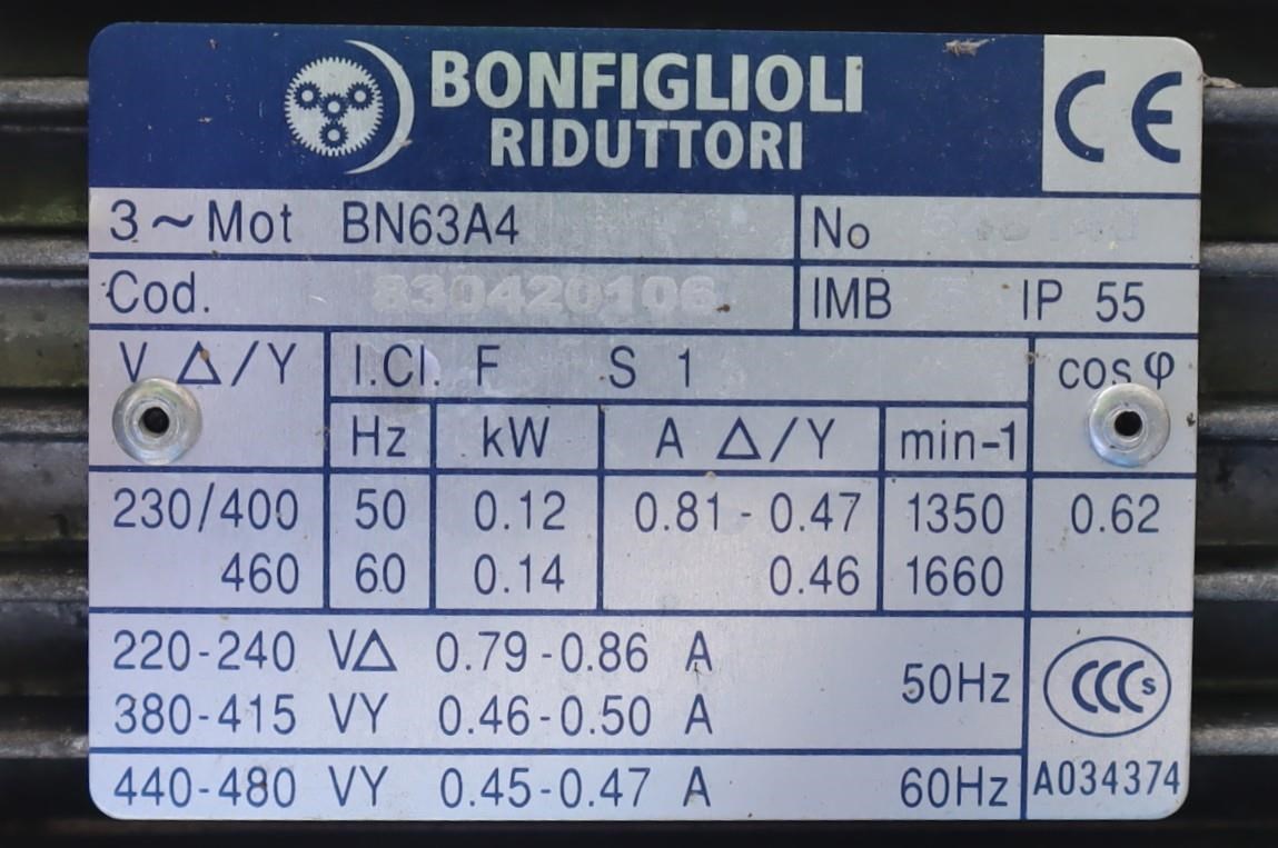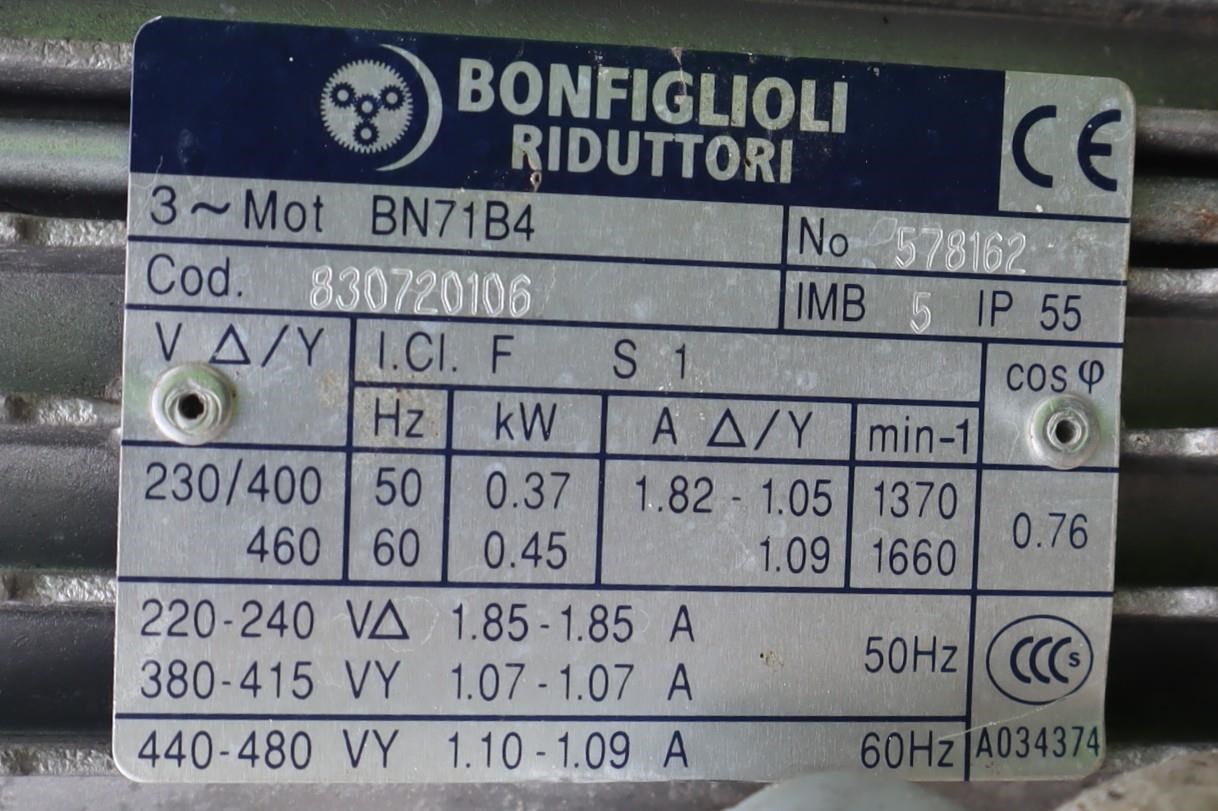 Conveyor Motor Speed: 1370 RPM