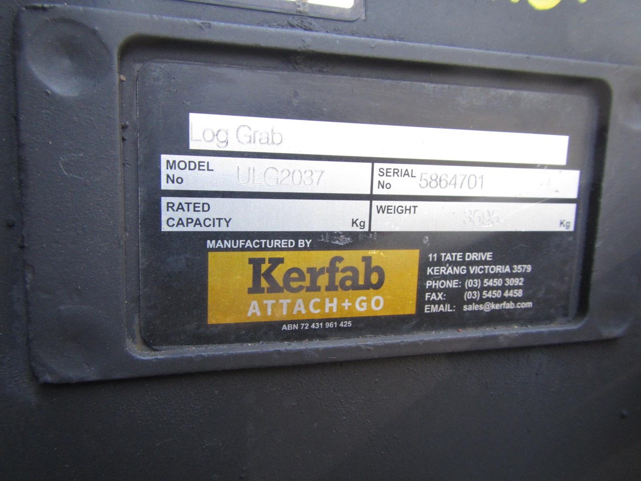 Kerfab Log Grab, Excellent Condition, 2000mm Wide x 2600 mm High x 2800 mm Long