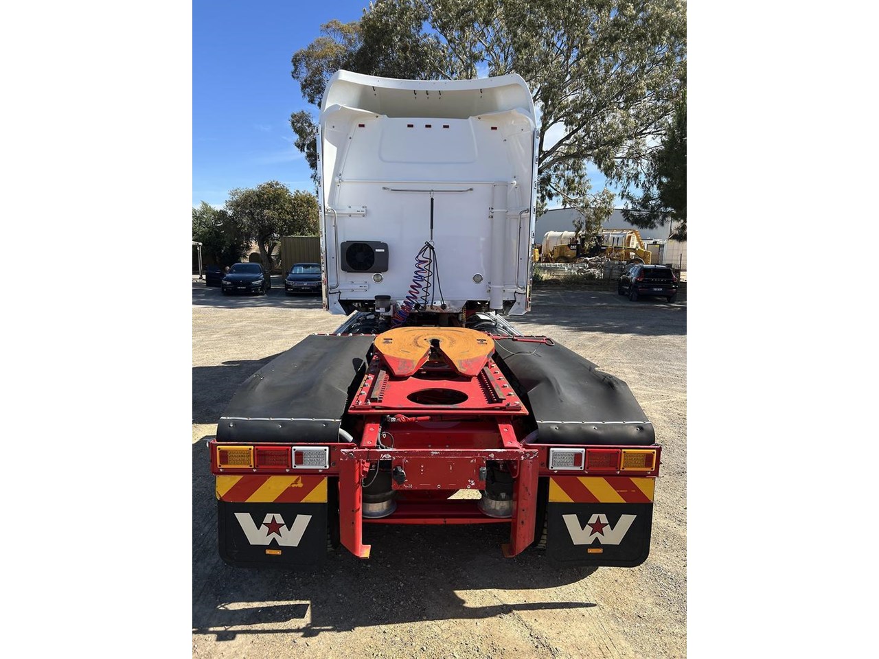 Detroit DD15 @ 560hp, 18 Speed Manual (RTLO20918B) Gearbox, Meritor RT46-160GP Rear Axles @ 4.3:1 Ratio with Front & Rear Crosslocks on Airliner AL46K Airbag Suspension, Alloy Wheels with Offsets to the Steer, Rubber Rear Guards, 2" Jost Sliding QRTT, 54" Stratosphere Sleeper with Ecowind Bunk Cooler, 2 x Rotating Beacon Lights, Quad Alloy Fuel Tanks with 1705 Litre Capacity, Alloy FUPS Bumper Bar, Auto Greaser, Draw Fridge, 2 x UHF, CD/Radio, Tidy Truck with 106 Tonne B Double/Road Train GCM.